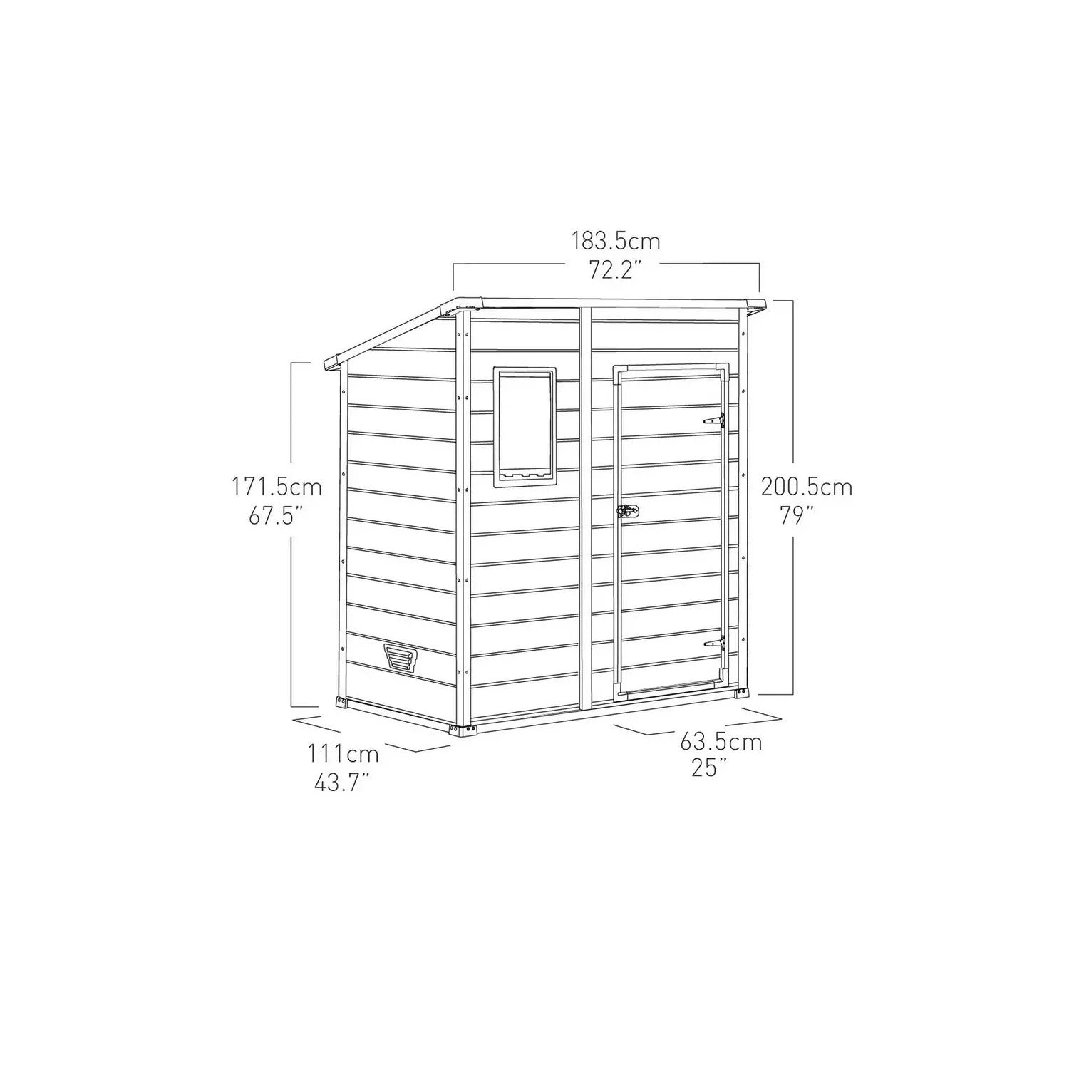 The Keter 6′ x 4′ Manor Plastic Pent Garden Storage Shed – Beige is compact, sturdy and built to last.
