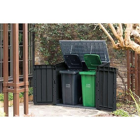 Ideal outdoor storage solution for garden tools and equipment, BBQ and accessories and x 2 120L (SMALL) wheelie bins